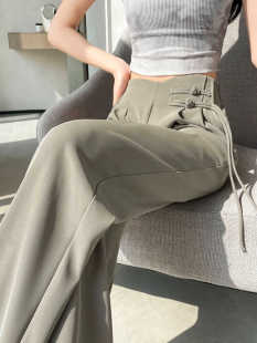 薄款 高腰新中式 西装 裤 女夏季 垂感雪纺休闲直筒裤 冰丝阔腿裤