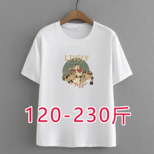 女装 胖mm正肩宽松短袖 特大码 新款 230斤遮肚子洋气上衣 T恤2025夏装