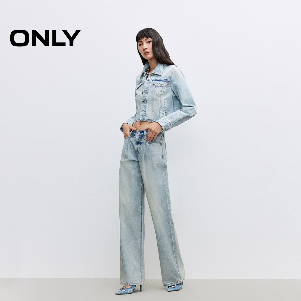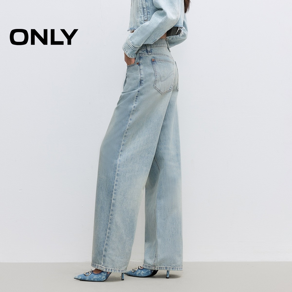 新款 牛仔裤 个性 阔腿裤 女 水洗工艺显瘦显高九分裤 ONLY2025秋季
