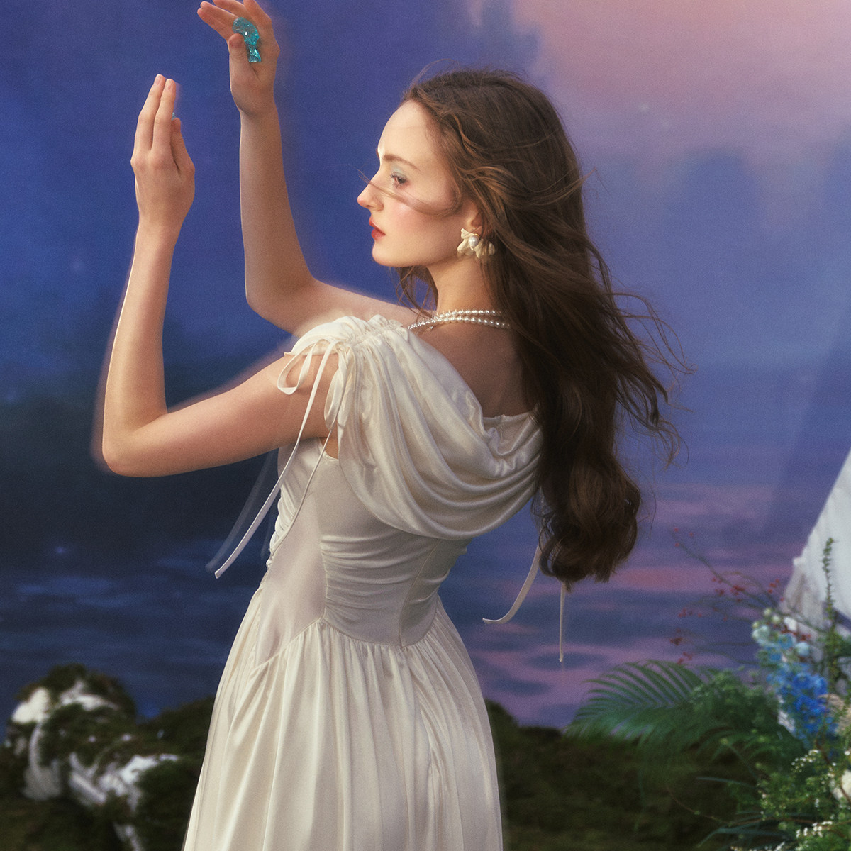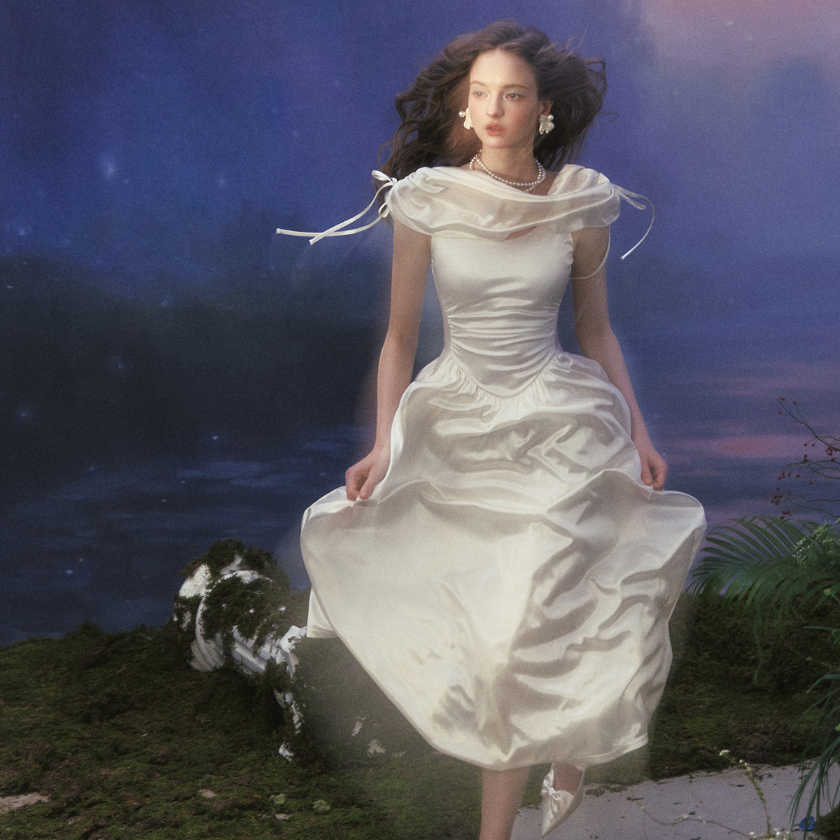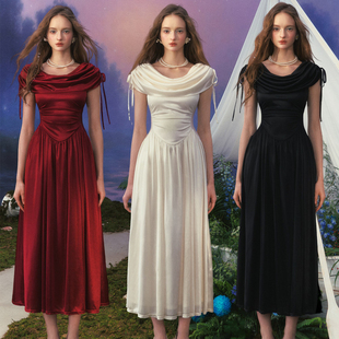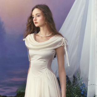 法式 迫降 宫廷设计感三色荡领连衣裙高级感小白裙夏 爱 LaceMade