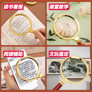 得力放大镜金属外框手持式 放大镜老人儿童学生阅读看报古玩鉴宝户外手机维修探索自然 高清光学便携式
