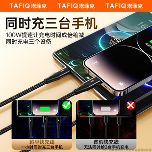塔菲克100W超级快充数据线三合一拖三充电器宝车载万能通用手机usb多头二多功能适用安卓iPhone苹果tpyec华为