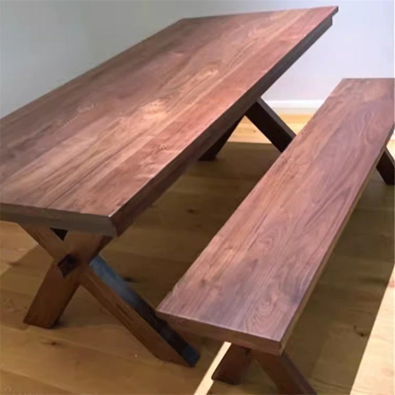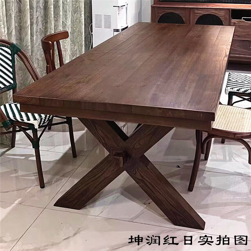 中古风实木岩板餐桌家用小户型2025设计师新款 白蜡复古长方形方桌