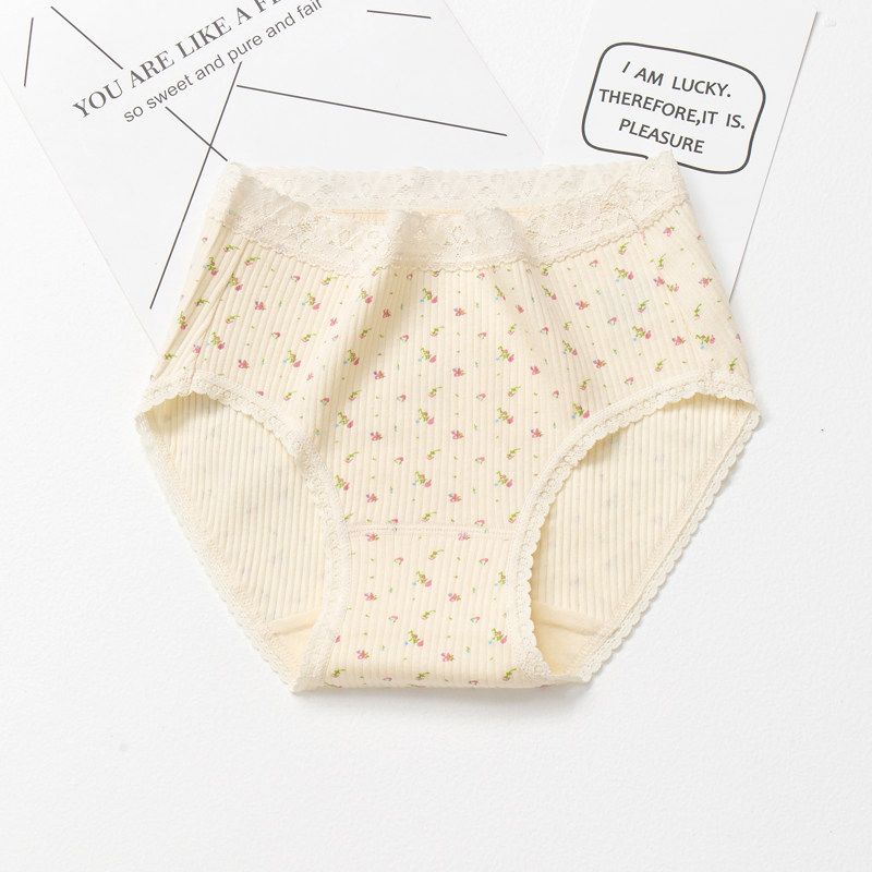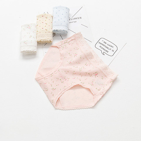 舒适透气有大码 日系100%纯棉中腰女士内裤 印花全棉质面料三角裤