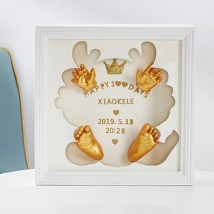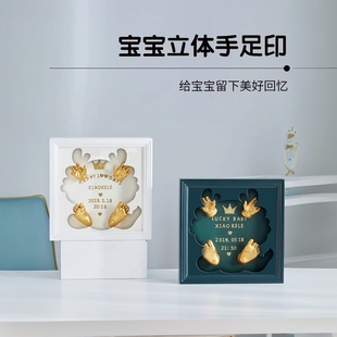 宝宝满月手足印泥婴儿手模脚模3D立体新生模型石膏胎毛发相框纪念