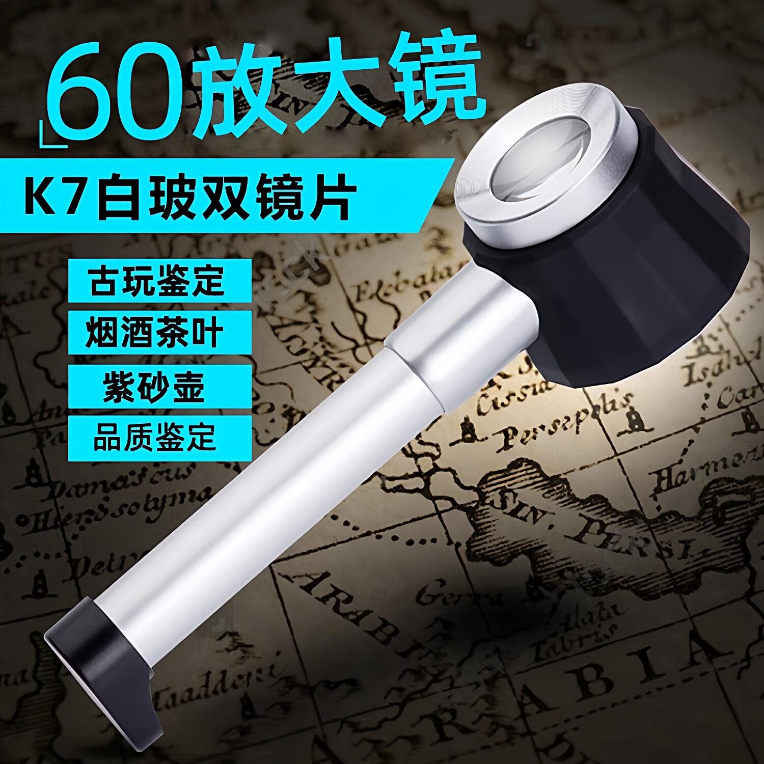 圣创60放大镜鉴定专用90高清正品 1000酒烟茶叶紫砂壶高倍45黄金钢印50手持珠宝古玩钱币带灯邮票天珠奢侈扩80