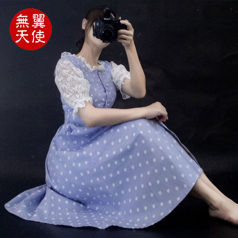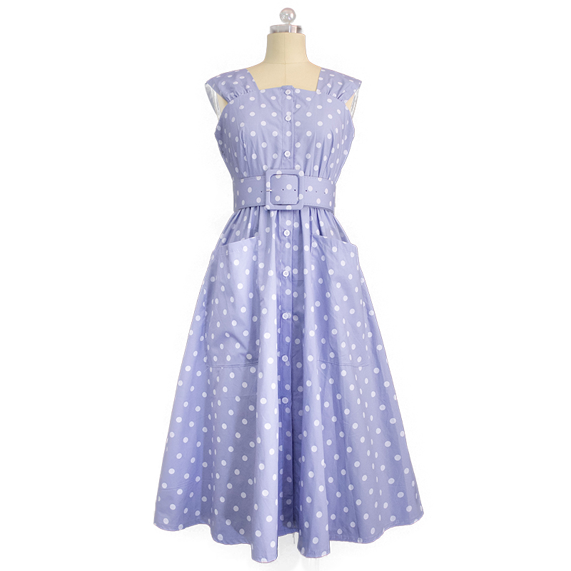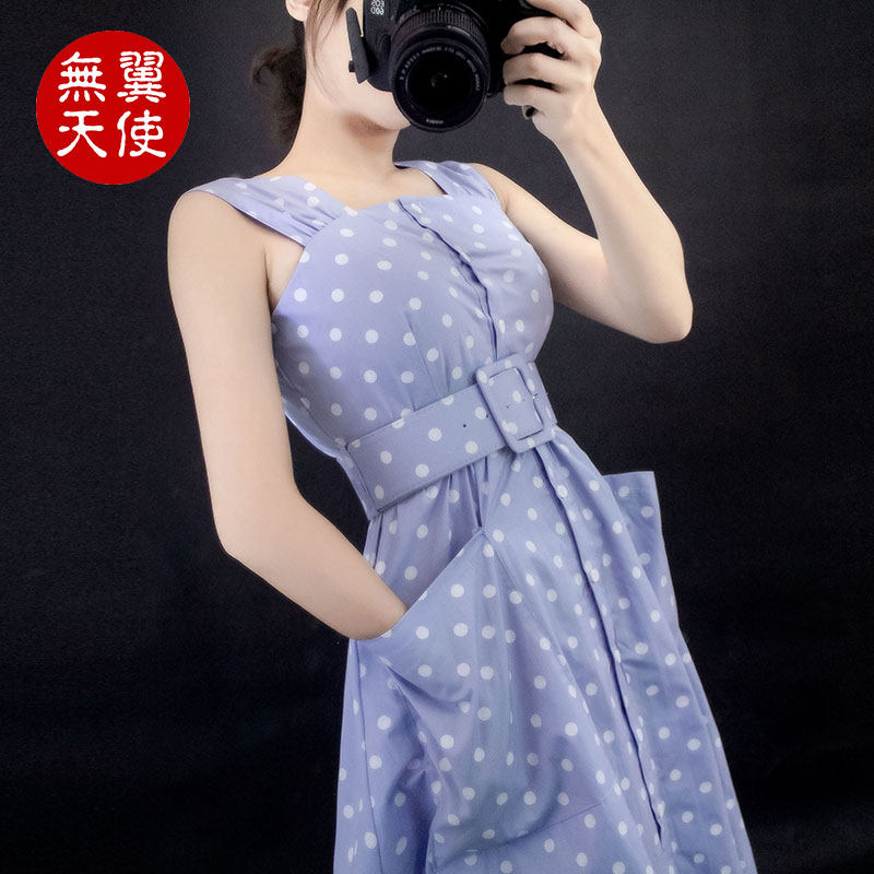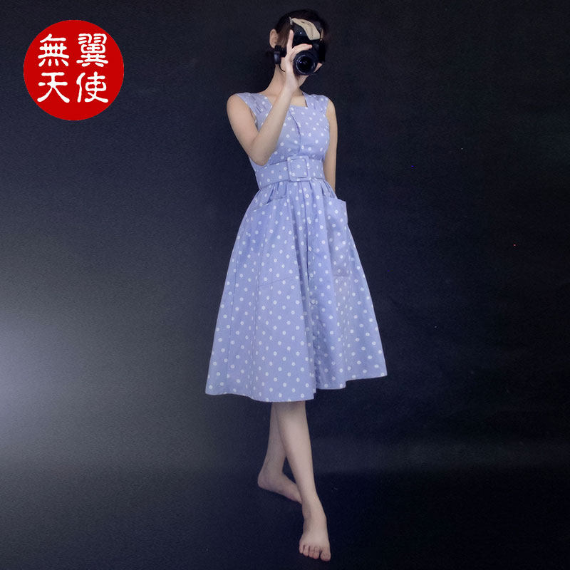 闭店清仓复古文艺波点高腰A字裙中长裙无袖 圆点收腰蓬蓬裙连衣裙