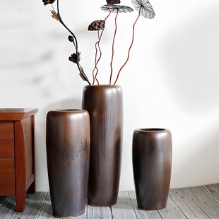 陶瓷落地古铜色现代时尚 大花瓶 客厅景德镇摆件玄关插干花花器欧式