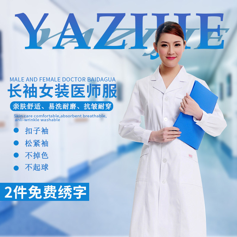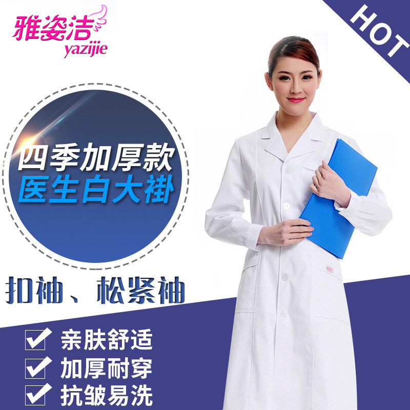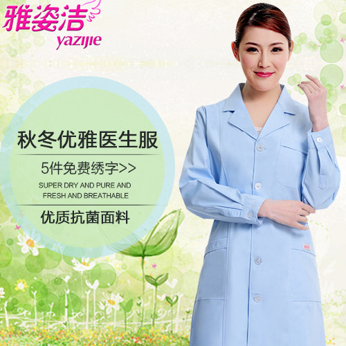 雅姿洁女医生服长袖 白大褂秋冬工作服药店美容院护士服卫校实验服