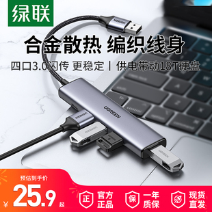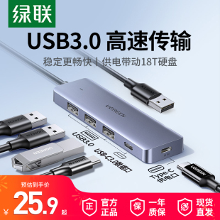 绿联USB扩展器集分线器插头多口Typec延长HUB3.0外接转接U盘带供电转换笔记本电脑平板台式 USP多接口拓展坞