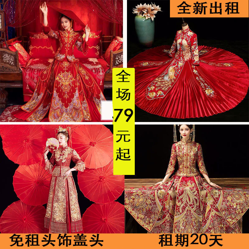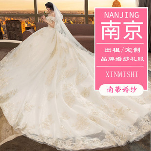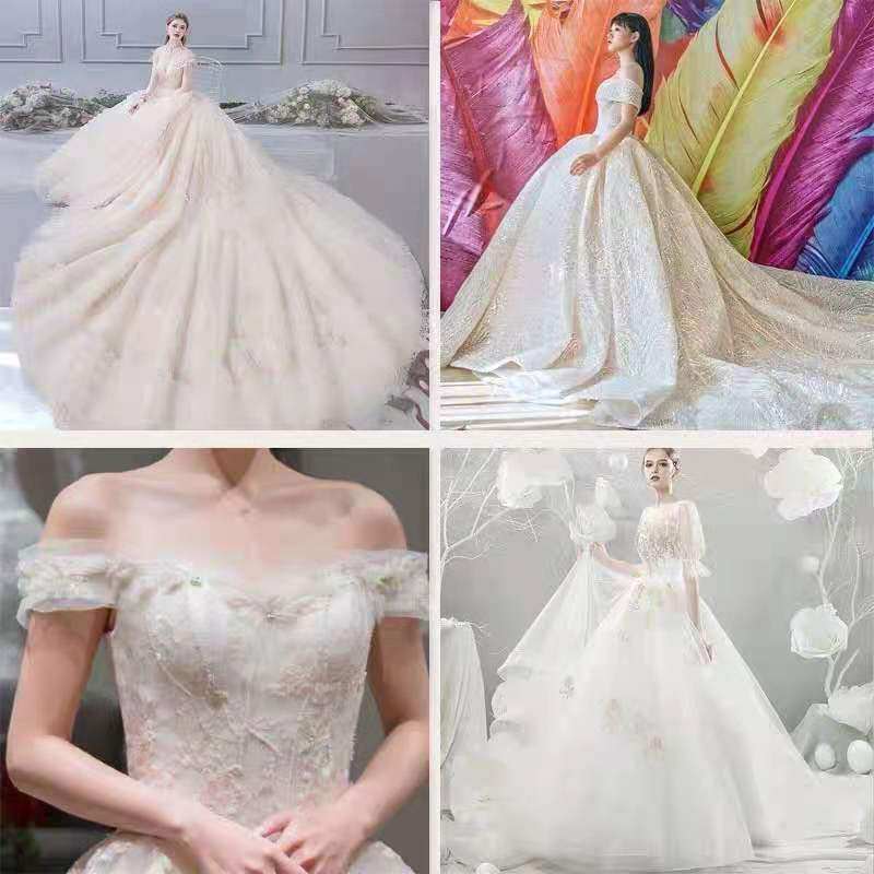 出租一字肩婚纱抹胸齐地拖尾森系婚纱礼服敬酒服秀禾服