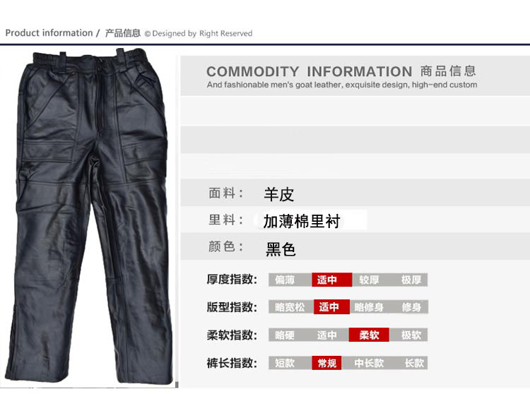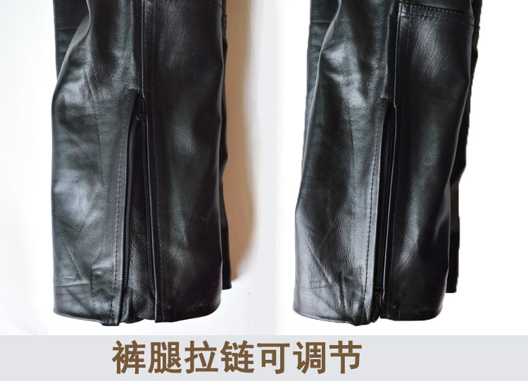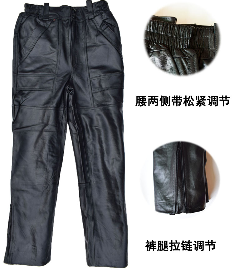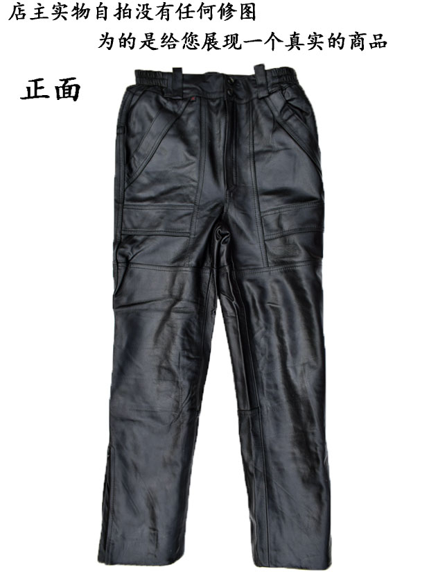 秋冬直筒高腰深裆中老年休闲裤 真皮皮裤 男羊皮头层防风宽松机车裤