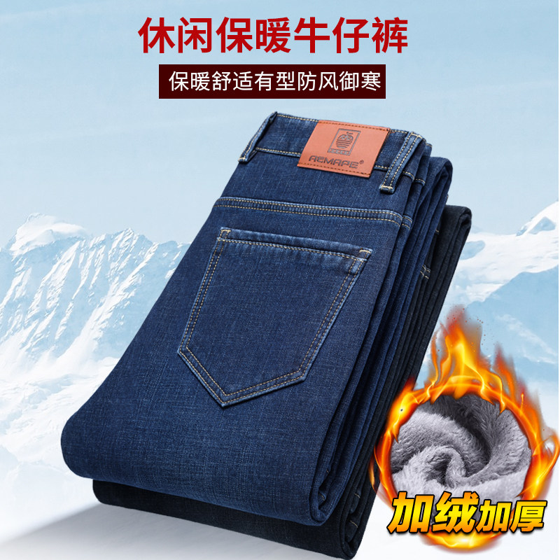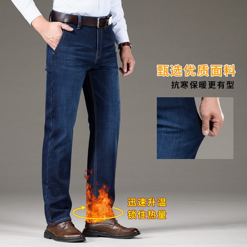 牛仔裤 子男冬季 加绒加厚宽松直筒中年男裤 保暖长裤 爸爸秋冬款 男士