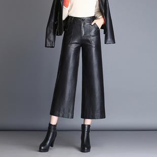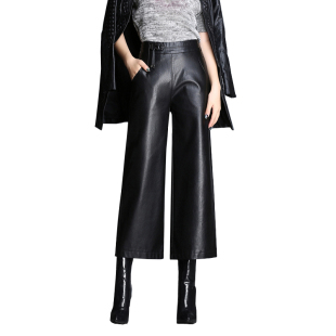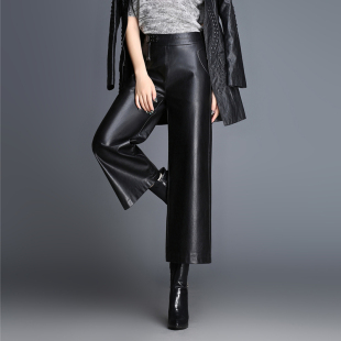 女2020新款 高腰绵羊皮休闲皮长裤 时尚 大码 九分阔腿裤 海宁真皮皮裤