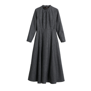 2020秋冬款 打底长裙 复古千鸟格子毛呢连衣裙加厚收腰显瘦A字长袖
