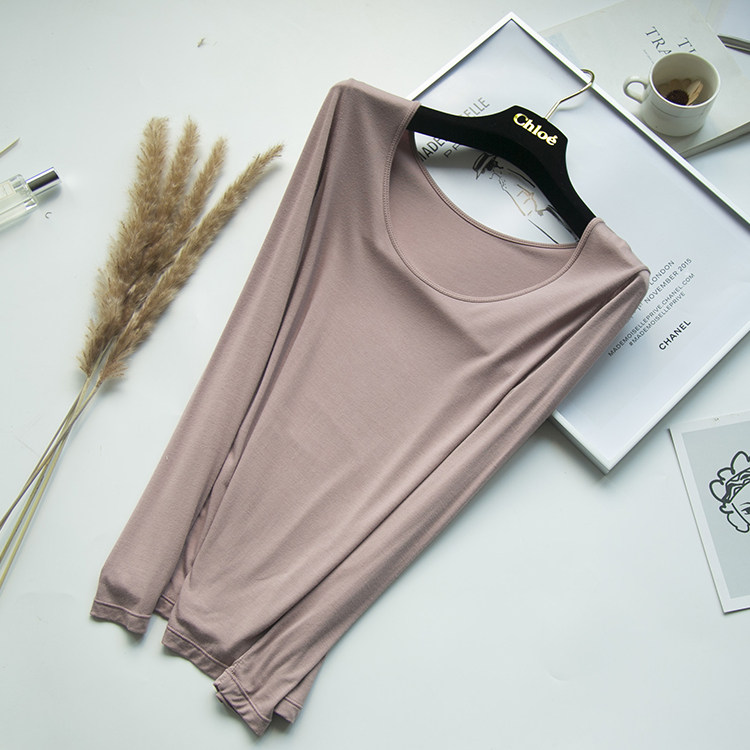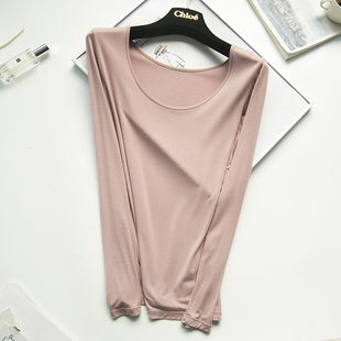 黑白T恤薄款 低领大圆领秋衣女装 内搭纯色上衣 女长袖 莫代尔打底衫