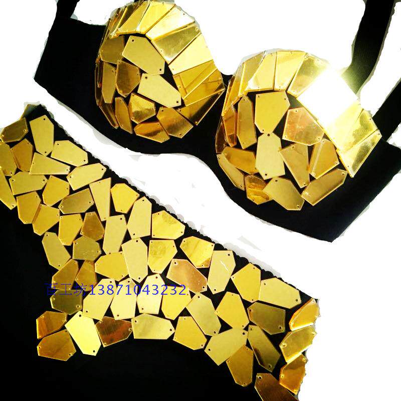 夜店女DS歌手白搭打底金银蓝色反光亚克力镜片缝制演出服舞台装