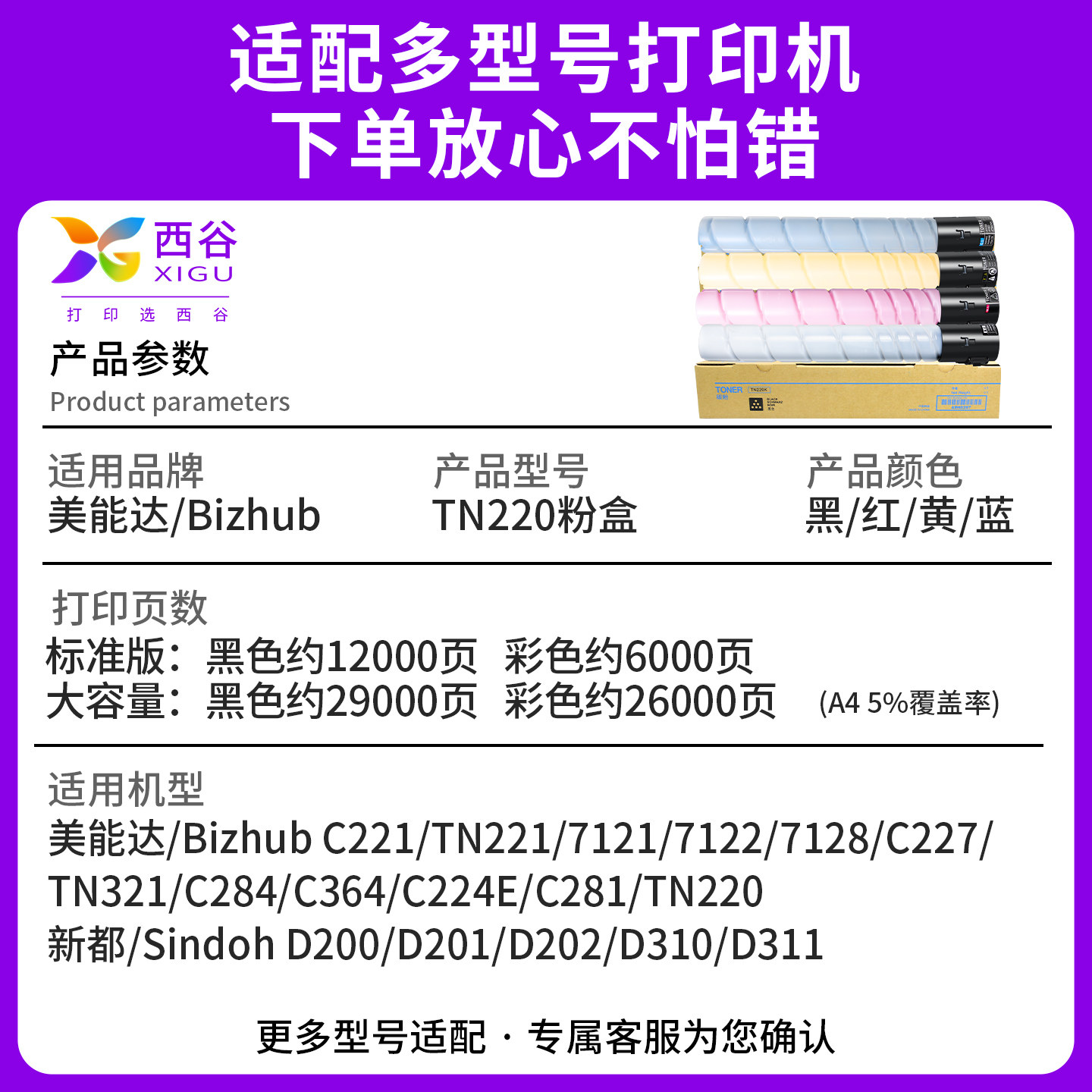 C364 C224e C227 适用美能达c221粉盒TN220 C7828柯美震旦c223s C284 C7822 sindohD311 C281墨粉盒tn321