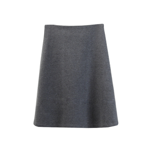 韩系含50羊毛拼接设计灰色毛呢半身裙冬季 高腰A字裙花苞裙中长裙