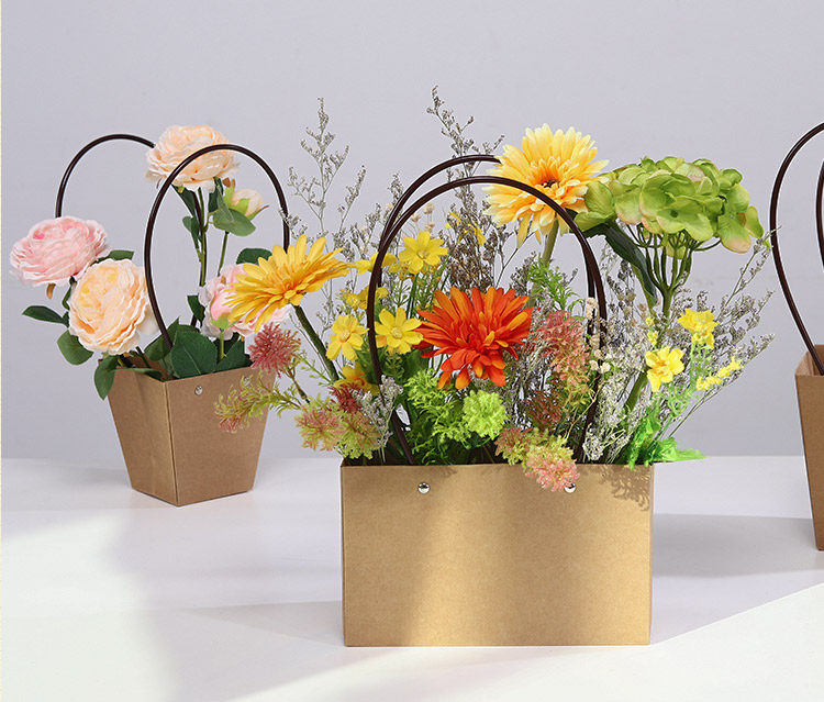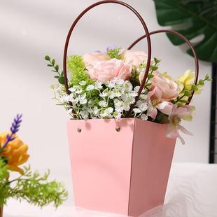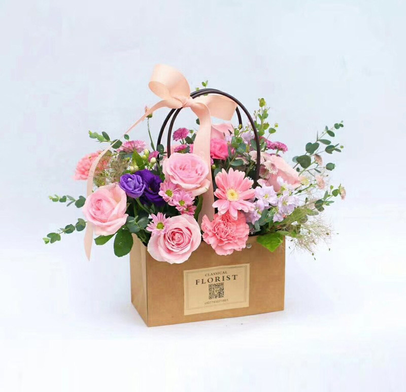 三八妇女节牛皮纸手提小花篮鲜花花束包装 盒插花花盒花艺Diy材料
