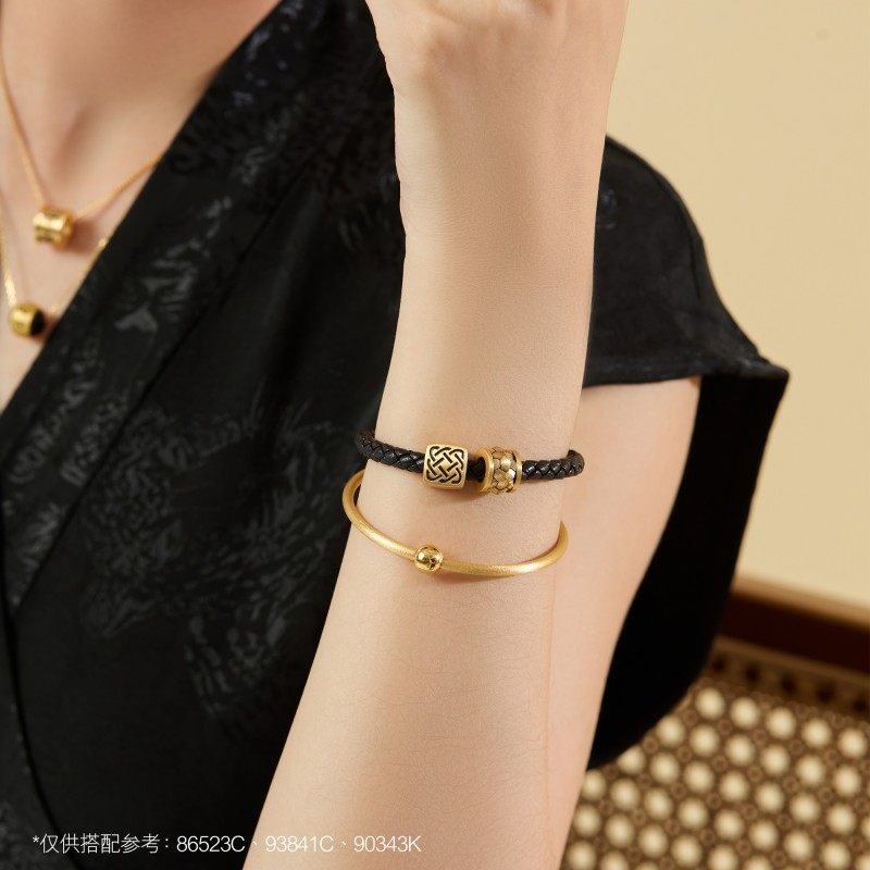 周生生转运珠黄金charmeXL酷黑守护勇气足金手链串珠男士