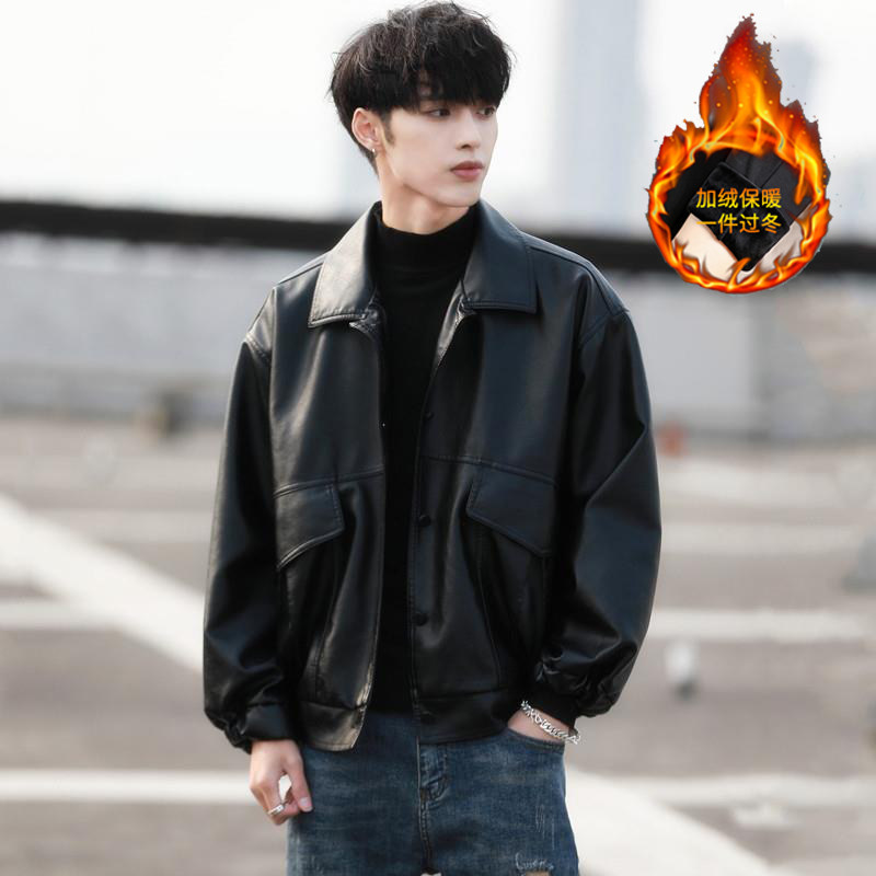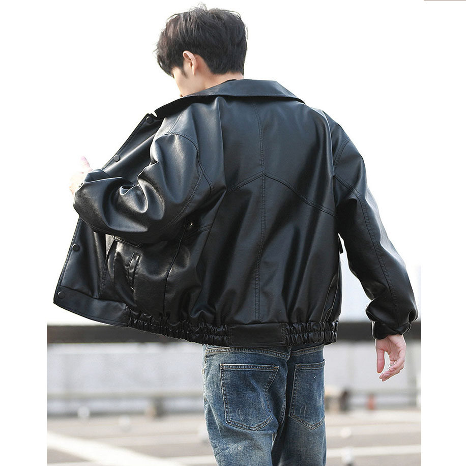 外套潮牌 机车服学生飞行员皮夹克春秋大码 韩版 潮流宽松皮衣男短款