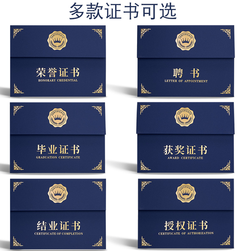 九千年高档荣誉证书获奖奖状定制优秀员工证件书外壳内页打印A4内芯聘书结业证书保护套绒面烫金封皮证书框