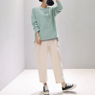 秋冬女卫衣纯棉显瘦T220 街头简约直筒圆领套头长袖 韩国女装 新款