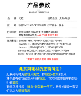 适用兄弟DCP7030粉盒MCF7340硒鼓TN2115 LJ2200激光墨粉 M7205