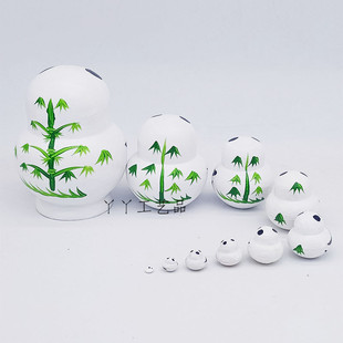 十层小肚熊猫俄罗斯套娃娃木制玩具工艺礼品许愿情人节礼物摆饰