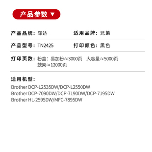 MFC7895dw打印机硒鼓HL2595 7090dw 7190dw 晖达适用兄弟DCP 7195dw 2412 L2535dw DR2450 L2550DW粉盒TN2425