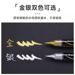 日本派通Pentel金色银色科学毛笔抄经书婚庆贺卡中楷笔金属色高光题字书法软毛笔bursh国画点缀笔写春联专用