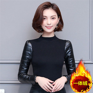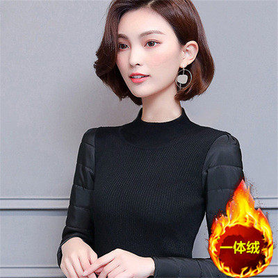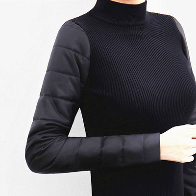 加棉袖 女冬加厚加绒针织衫 子毛衣配马甲皮草 打底衫 一体绒羽绒袖