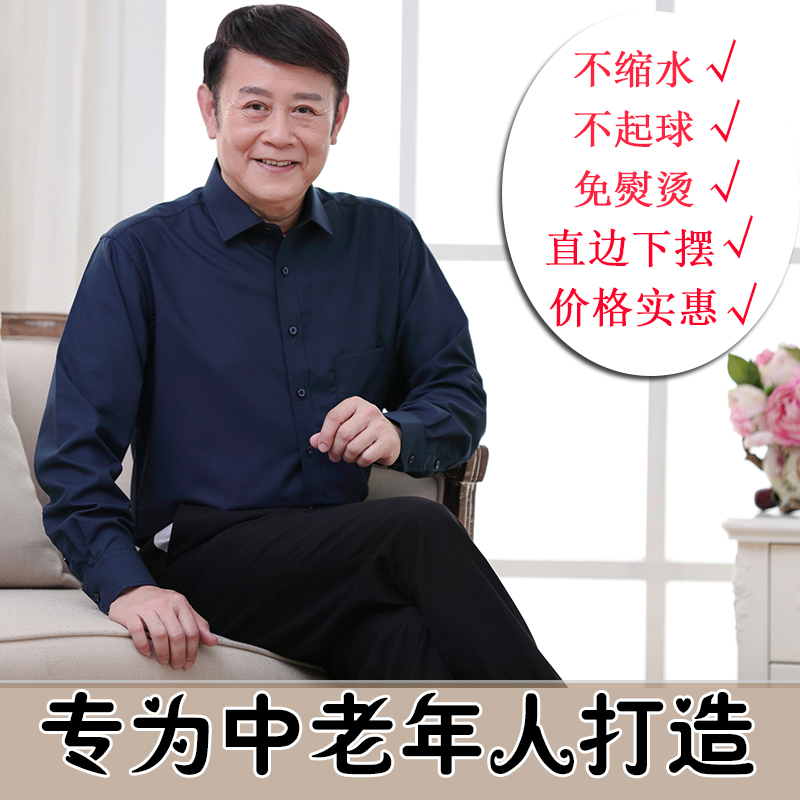 老人爸爸装 衬衫 衬衣宽松平摆寸衫 老年人大码 中年男士 直筒男装 长袖