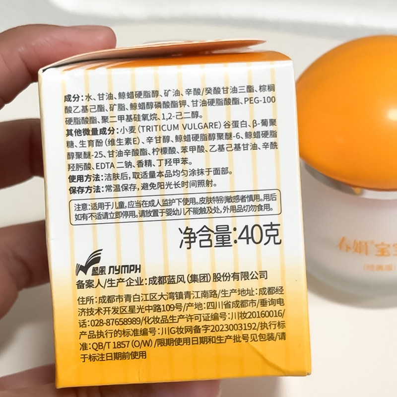 春娟宝宝霜40g清爽保湿 版 儿童霜补水滋润锁水婴幼儿面霜 经典 3瓶装