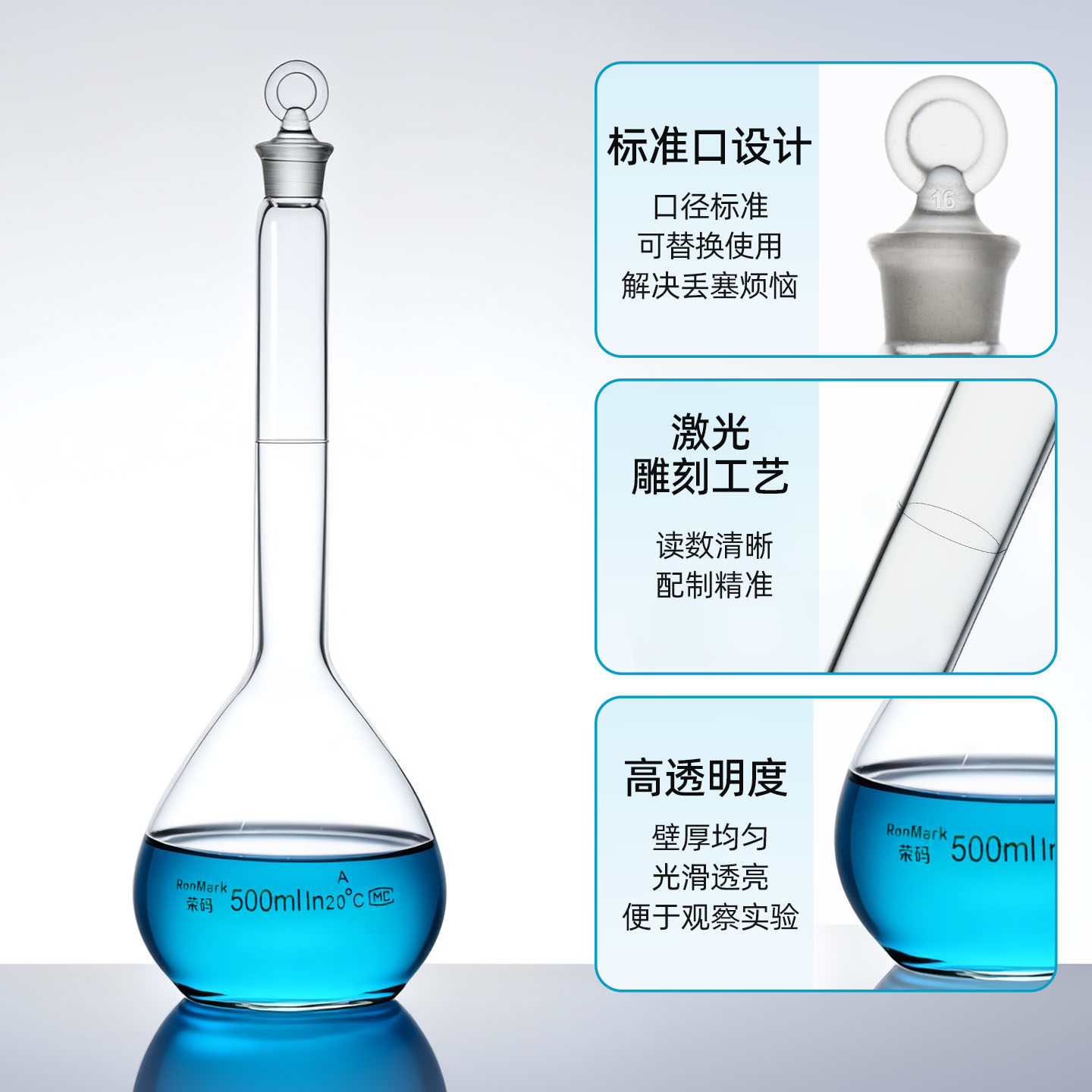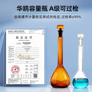 玻璃容量瓶A级透明白量瓶实验室棕色量瓶25 100 500 2000ml定容定量瓶磨口具塞实验器材 华鸥 1000 荣码