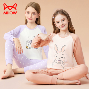线衣线裤 全棉毛衫 女童纯棉春秋大童女孩儿童内衣套装 猫人秋衣秋裤