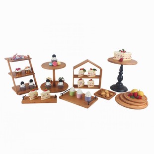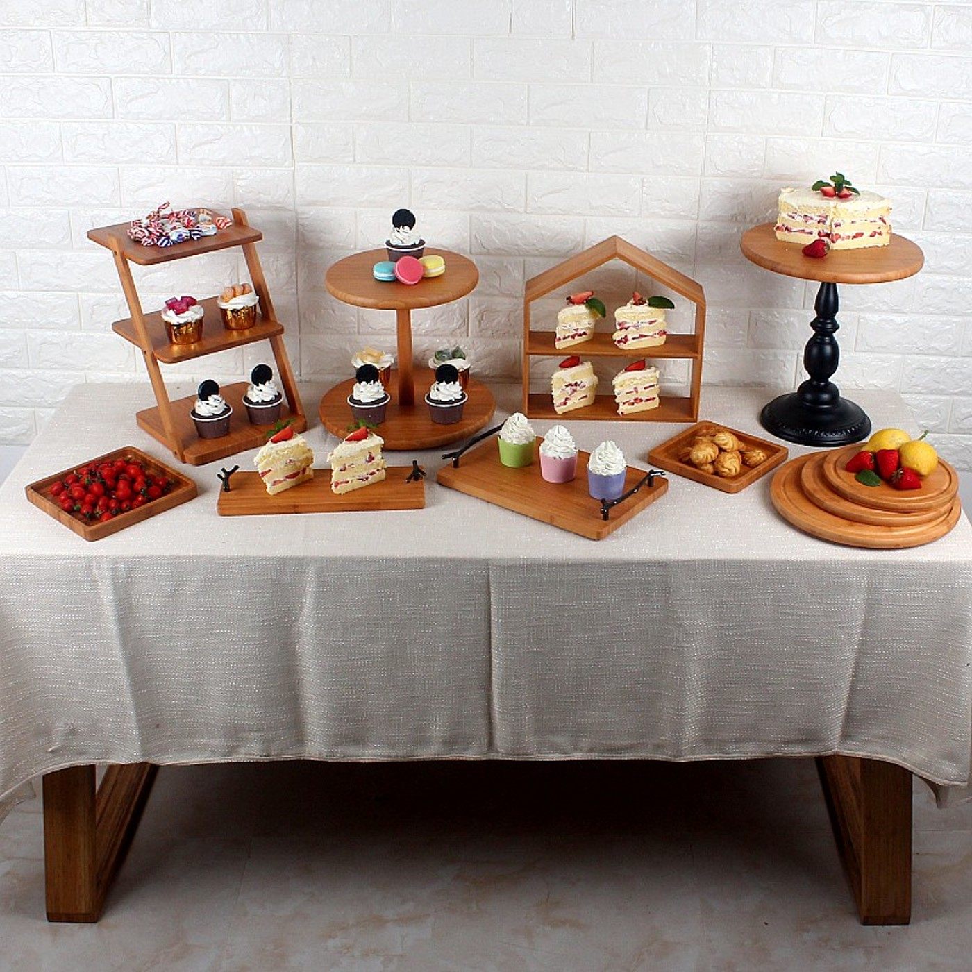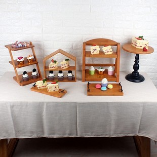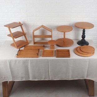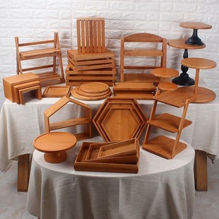 竹质蛋糕盘蛋糕架森系甜品架甜品台点心架茶歇摆件 红棕色合集