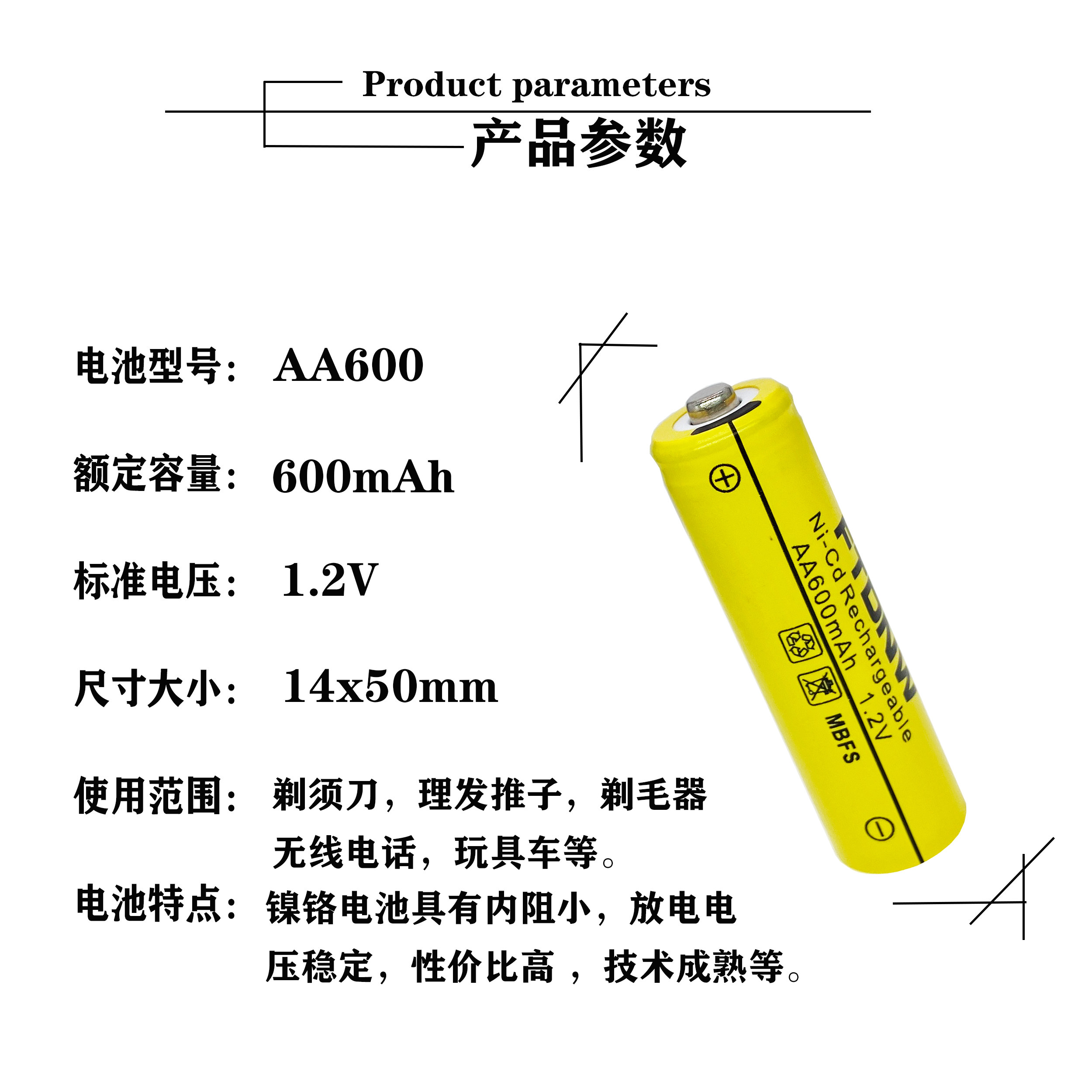 5号AA600mAh尖头充电电池1.2v应急 刮胡剃须刀玩具电池鼠标遥控器