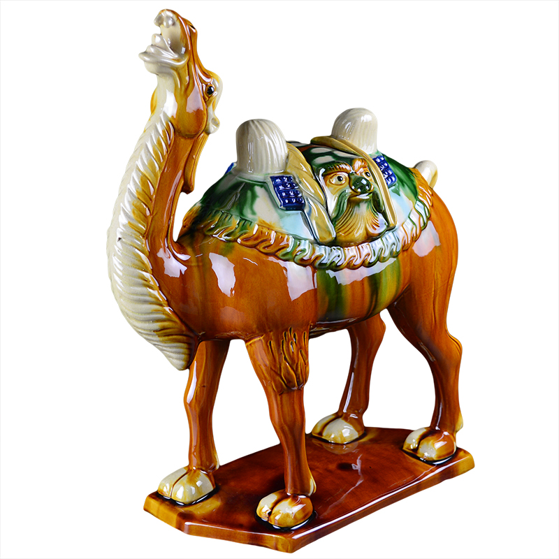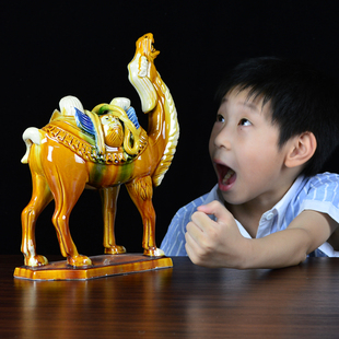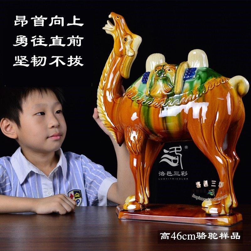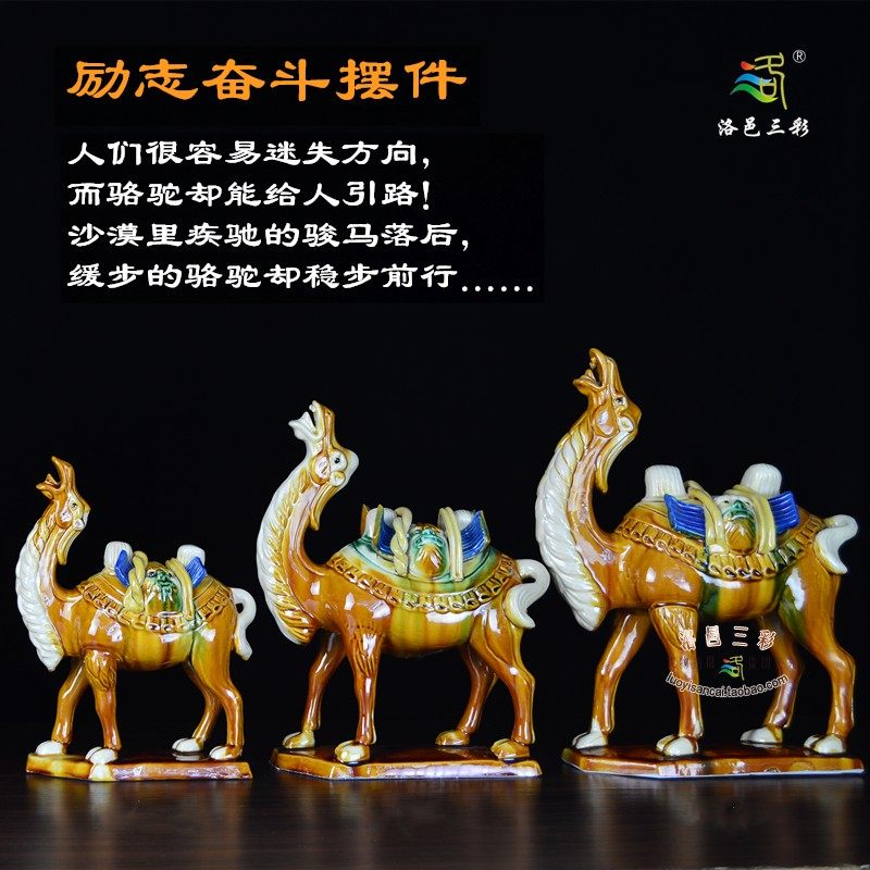洛邑三彩手工唐三彩陶瓷骆驼摆件中式 饰丝绸之路工艺品纪念礼品 装