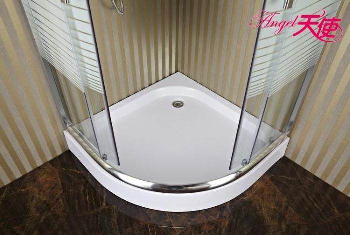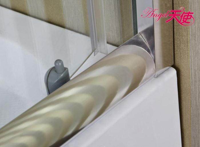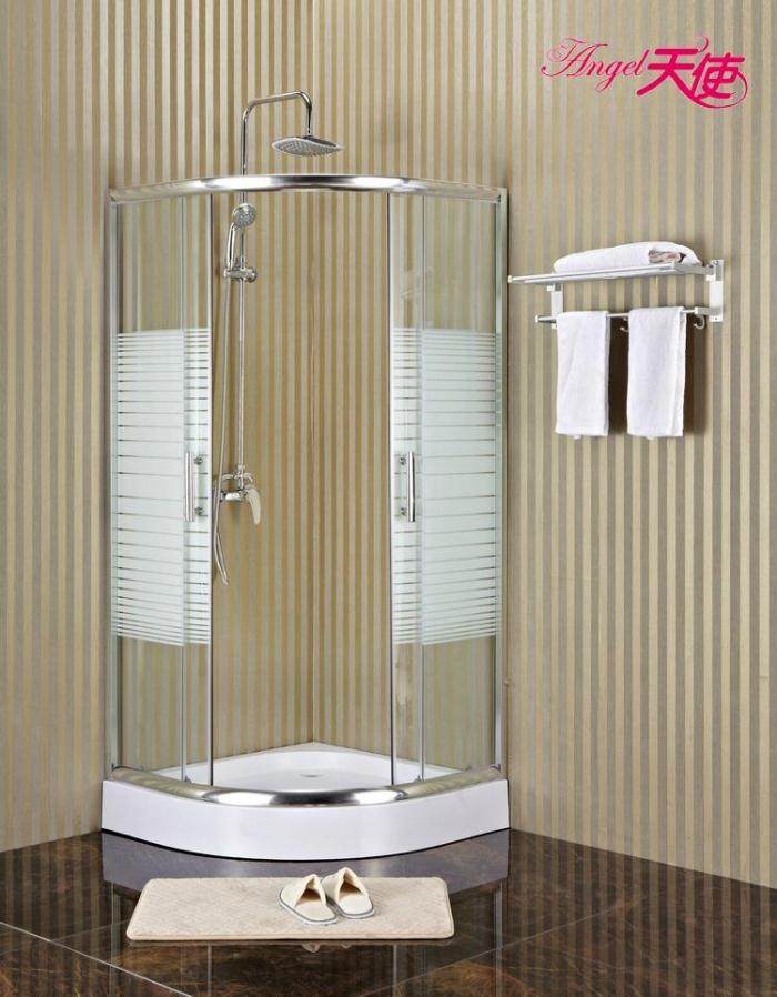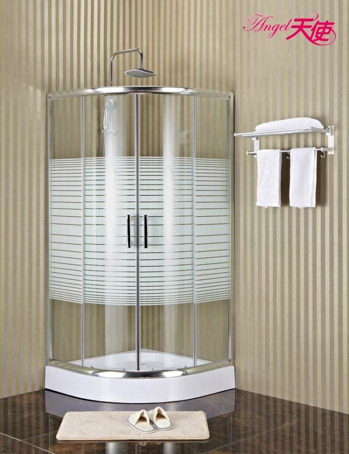 天使卫浴扇形移门式 钢化玻璃亮银边框横条纹弧形简易淋浴房洗澡房