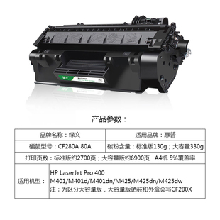 M425dn 80A墨盒 Pro M401d M401dn M401 LaserJet 400 M425dw黑色碳粉盒 CF280A硒鼓 M425 280a适用惠普HP