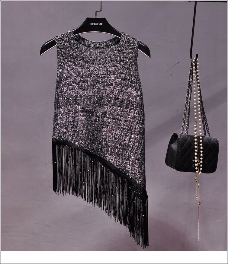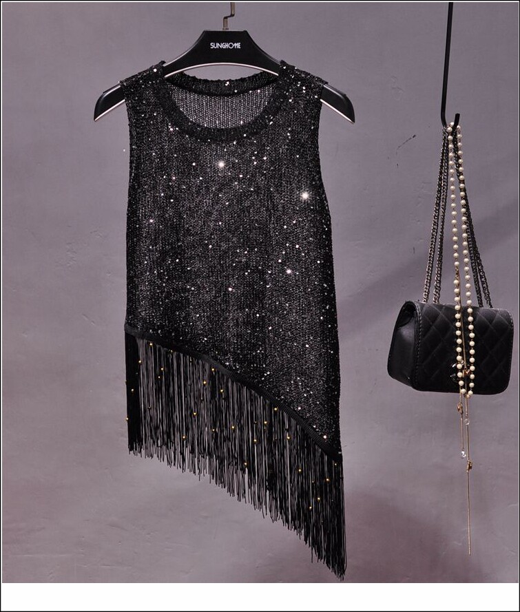 亮片流苏背心金线小吊带外穿无袖 夏季 针织珠片上衣女 2019新款 韩版