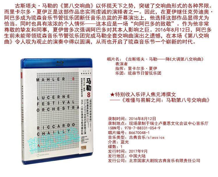 全新正版 蓝光碟DVD高清1080PBD 国家大剧院马勒降E大调第八交响曲