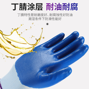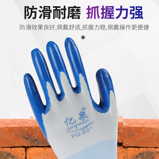 亿泉男士 胶皮耐磨丁腈浸胶防滑耐油尼龙透气工地干活橡胶劳保手套