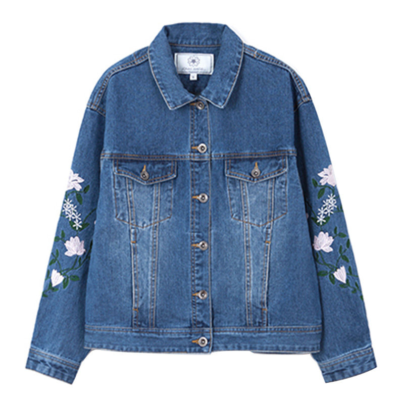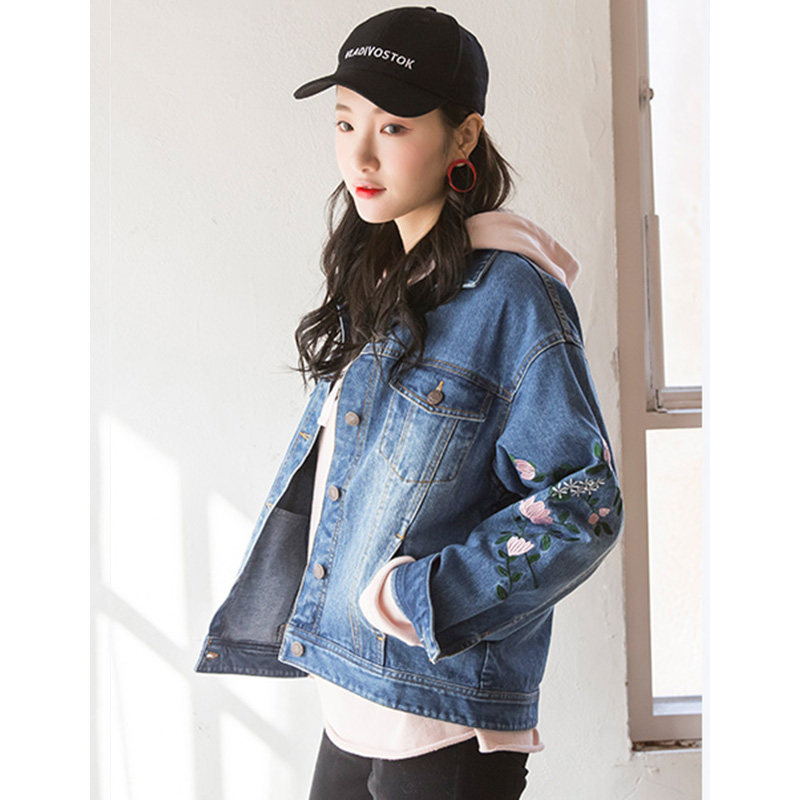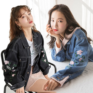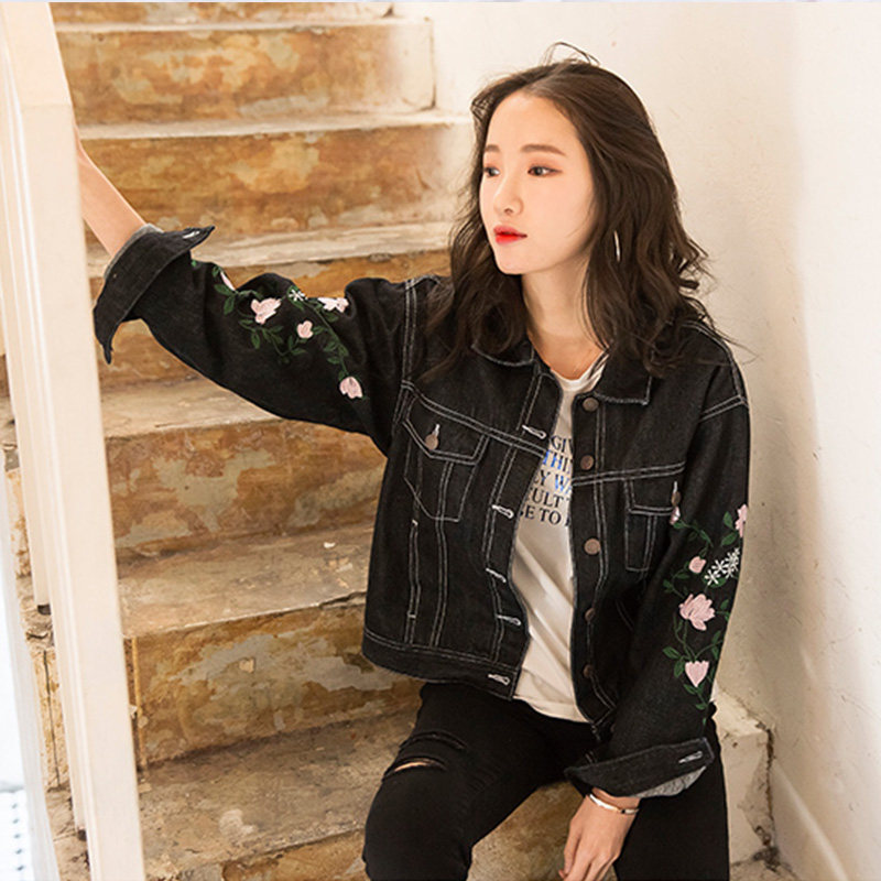 宽松休闲黑色牛仔服长袖 2018秋季 韩版 刺绣牛仔外套女短款 上衣 新款