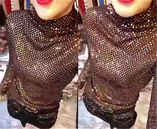 洋气小衫 欧洲站秋冬新欧货性感亮面亮片弹力高领长袖 t恤女打底衫