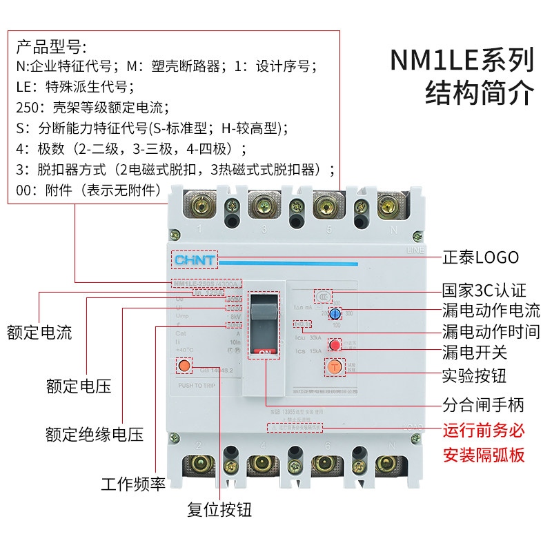 4300A 正泰 250S NM1LE 125A160A200A 漏电保护器塑壳断路器空开