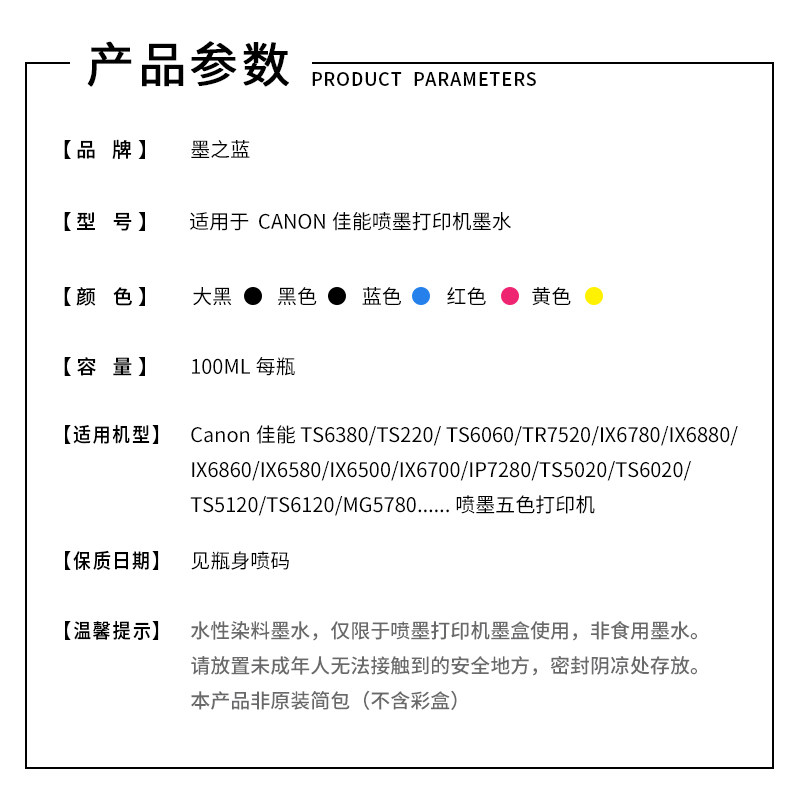 IX6780 6870 5020 MG6820 5780填充连供墨水 6020 适用佳能TS5060