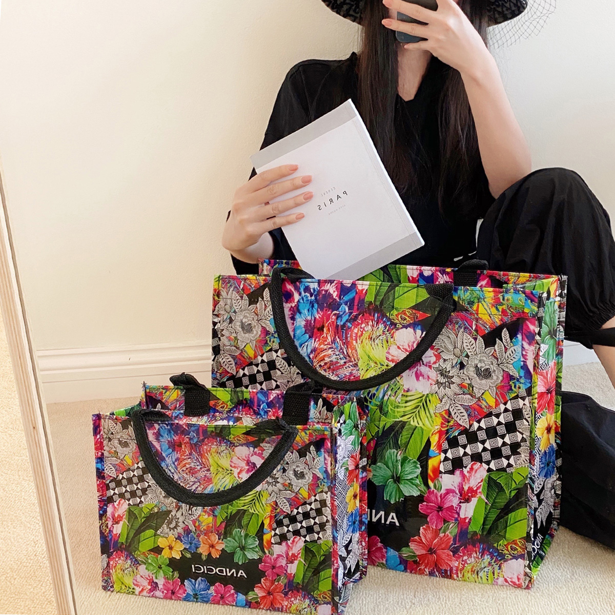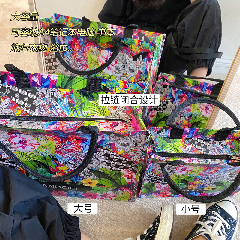 ANDCICI 油画手提袋防水大容量环保袋购物袋单肩包女包 花田错